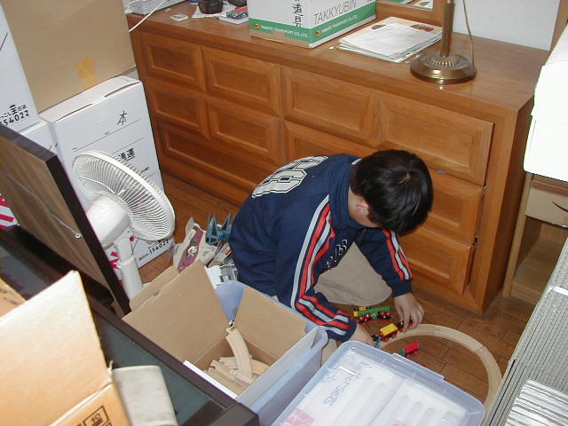 現実逃避して、小さいころのおもちゃに夢中になっている息子の写真。