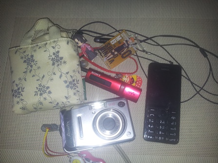 ほかに、お財布、鍵、ティッシュ、ハンカチなど