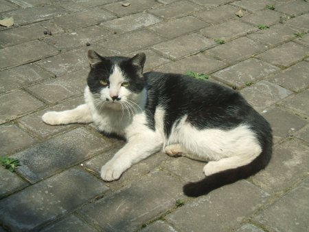 近所というか、住んでいるアパートの目の前のちょっとした場所でいつも日向ぼっこしている野良のタキシードくんこと「まもちゃん」です。