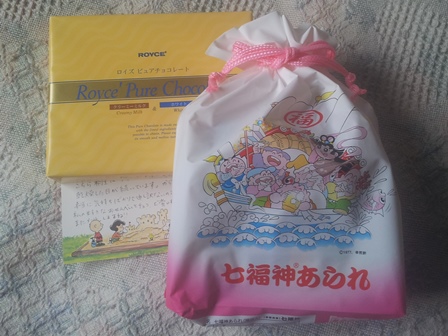 2月だから?、チョコとご当地の縁起物の七福神あられ (*^_^*)