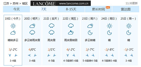 寒潮22日夜起发威 苏州未来48小时或降10℃