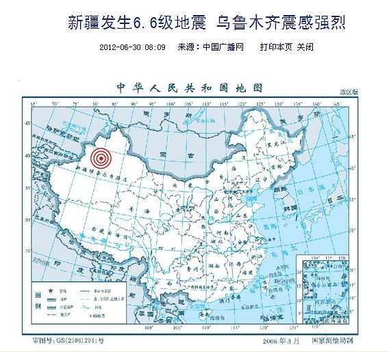 「新疆发生6.6级地震 乌鲁木齐震感强烈」