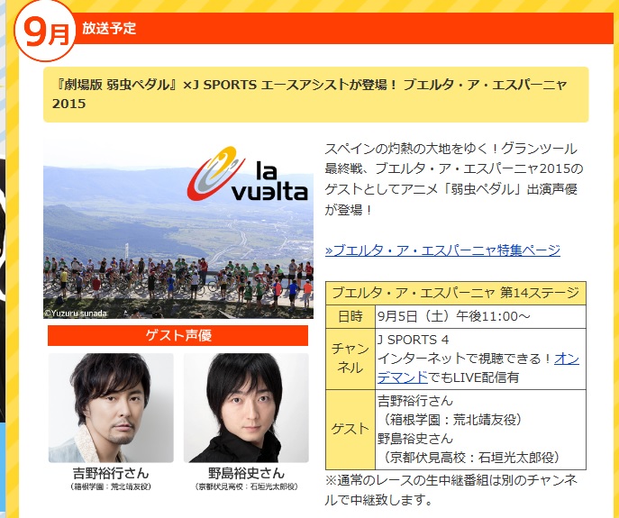 『弱虫ペダル×J SPORTS グランツール観戦塾』
