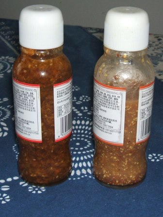 今回は、どちらも、市販のドレッシング瓶1本分。